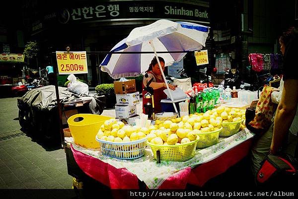 明洞的彩妝店梨大都有,但是給的贈品不多,若不是特殊的牌子,其實不用都到這邊買,不過這邊的站在門外攬客的化妝品姊姊們比較正!
